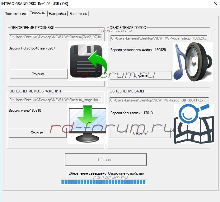 Исключением лишь сталовечером, с официального сайта был скачан файл прошивки 2.07, в котором оказались ещё и файлы графики и голоса. Все эти три файла были успешно обновлены.
