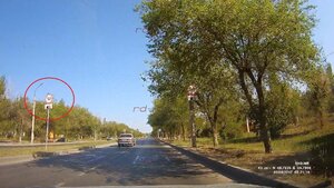 Посмотрел повнимательнее, да, знак есть. А камера висит метров через 100 (может 150, глазомер плохой, а по столбам не посчитаю, там между ними не стандартные расстояния) после перекрёстка.