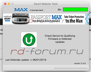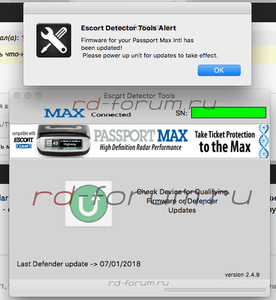 2.4.9 это точно версия прошивки, а не Escort Detector Tools? В меню самого РД номер прошивки никак не отображается?