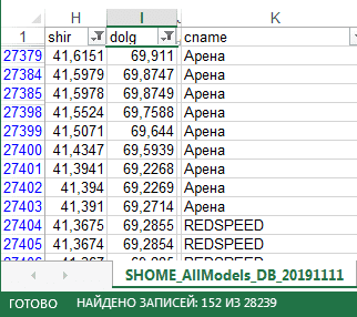 Выборка из текущей официальной версии в квадрате: широта между 41 и 42 градуса, долгота между 69 и 70 градусов: