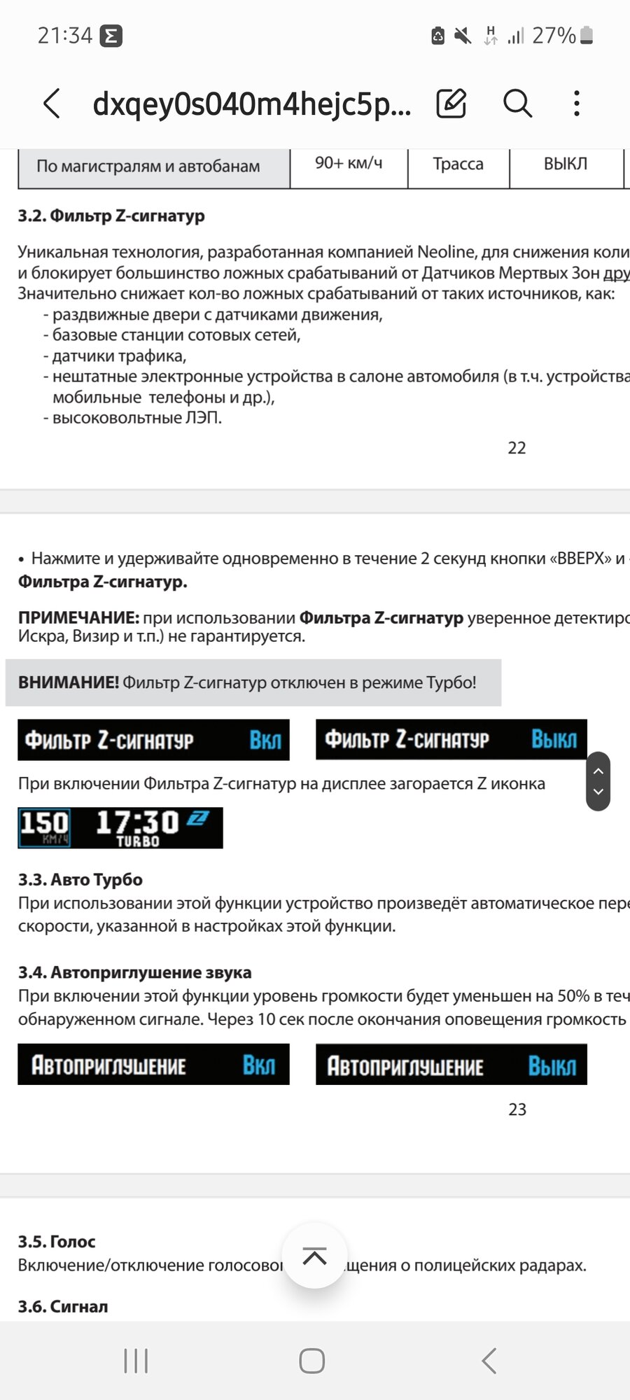 2. Добавлено сигнатурное распознавание сигналов в режиме «Трасса» и режиме «Х-СОР» при скорости выше 75 км/ч.