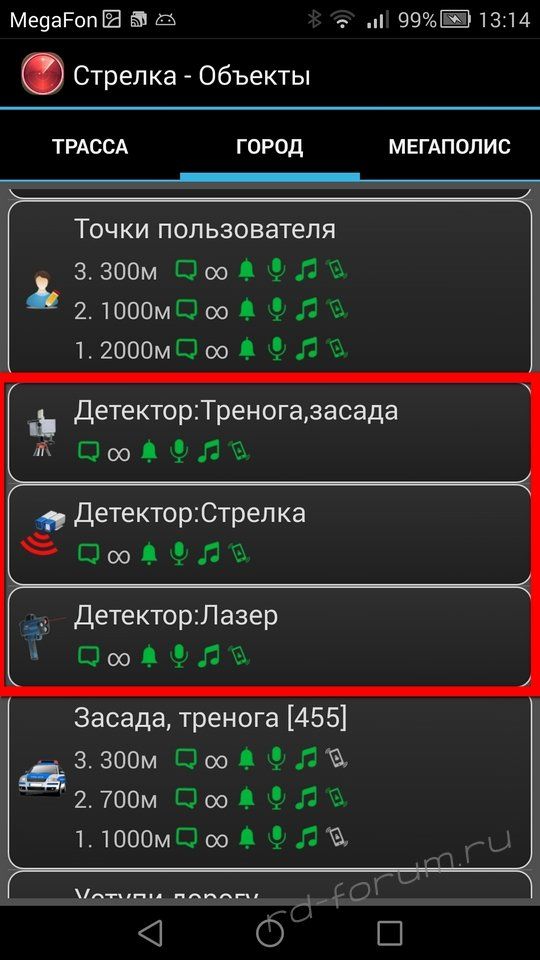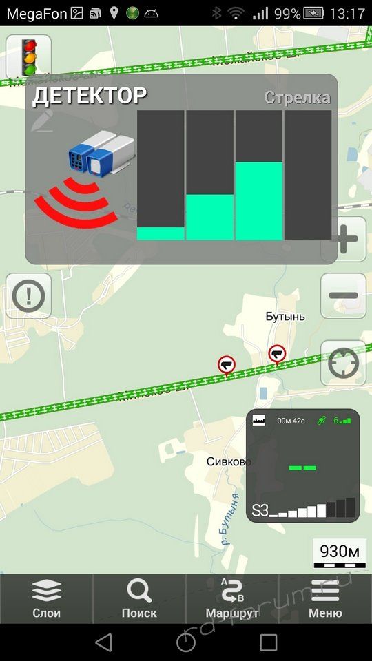 На последней фотке пример сработки на Стрелку, которая есть в базе объектов программы. В этом случае показывается объект из базы, а снизу видна сработка радар-детектора.