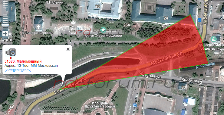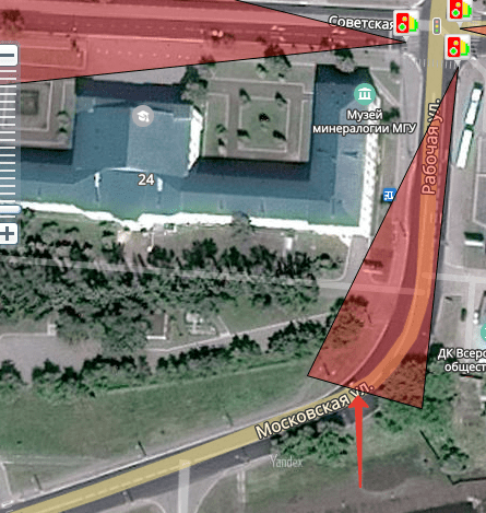 Вот эту камеру в двухточечном режиме оповещает в точке, куда указывает стрелка. В одноточечном режиме озвучивает при выходе на финишную прямую перед камерой, примерно на уровне буквы "Р" в названии улицы.[DOUBLEPOST=1560451576][/DOUBLEPOST]Проверю на такой вот камере. Мне кажется очень похоже на Ваш случай