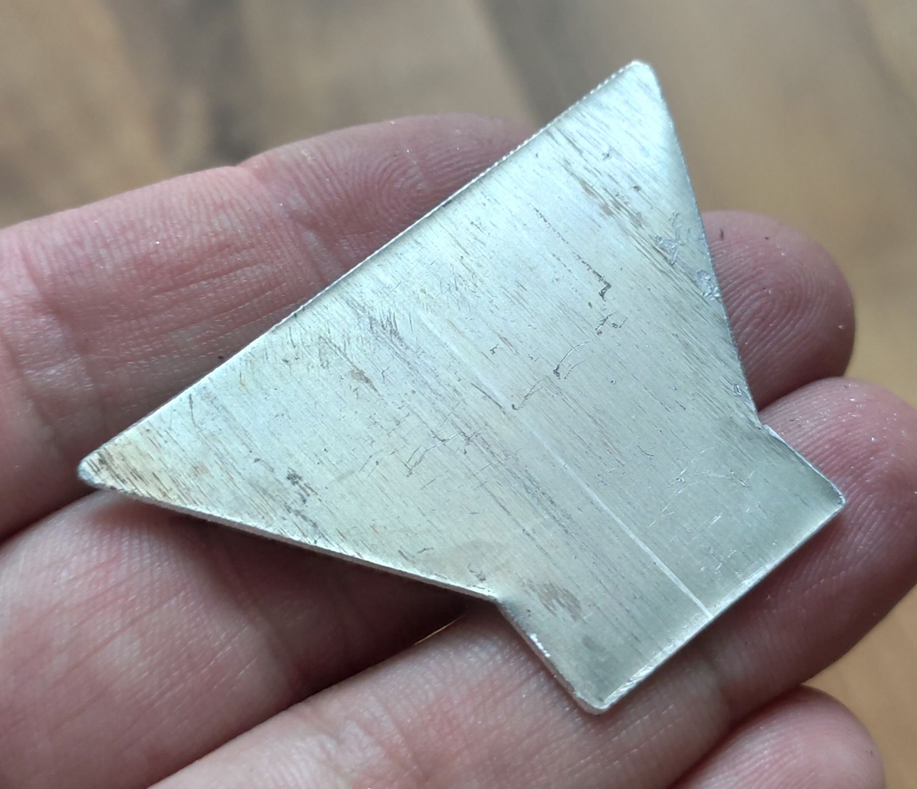 Нашел в запасах кусочек аллюминиевого листа и вырезал из него вот такую заготовку, края которой обработал напильником (до нужных размером доработать напильником:lol:)