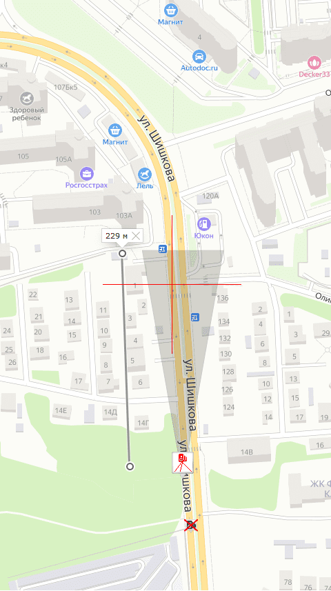 Пользовательские точки сбросил, место: г. Воронеж, двигаюсь по ул. Шишкова к перекрестку с ул. Хользунова в сторону ул. Беговой
