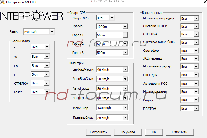 ля тестирования* и понятия работы РД по радарной части, и сигнатурного определения радаров, установите чувствительность 3 (высокая), отключите GPS и проедьте радары в различных режимах выставленных в ручную кнопкой City; Трасса > Город 1 > Город 2.