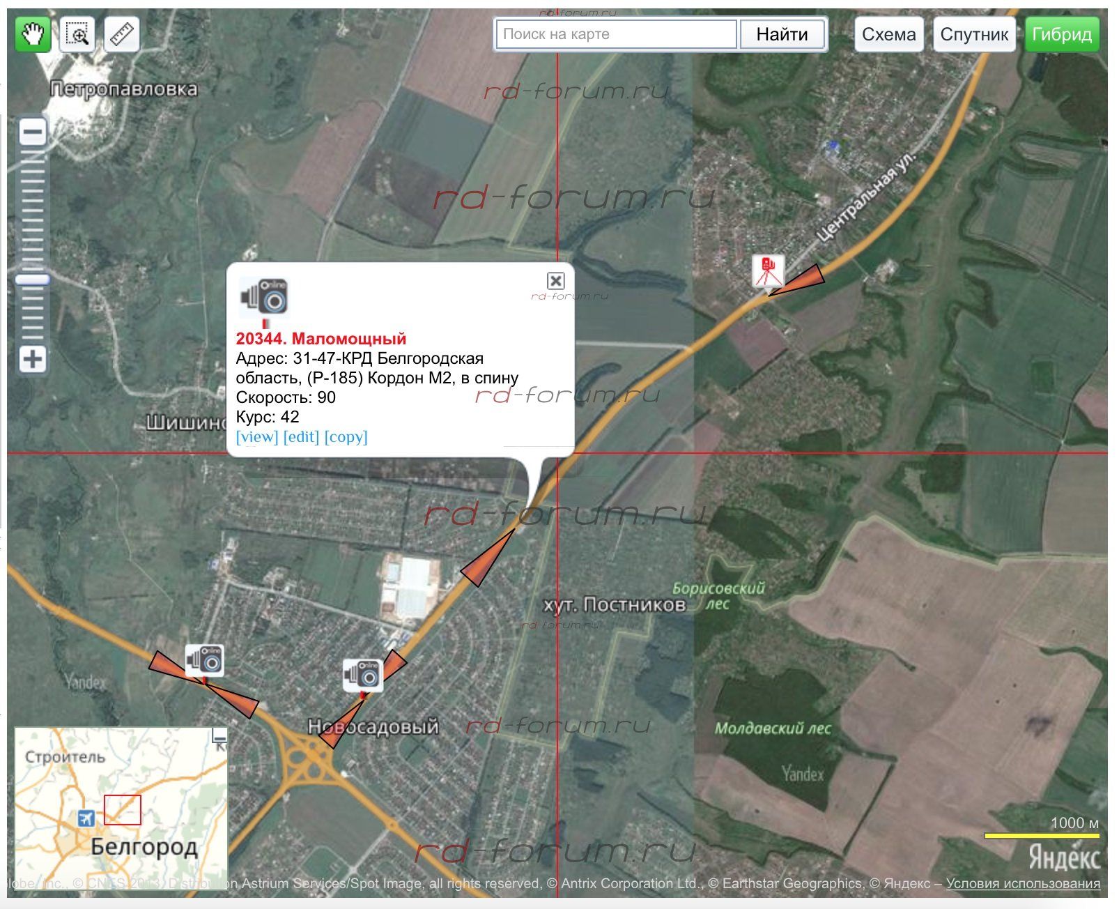 Это Кордон М2, уже в базе.Вчера ночью возвращался с Губкина,в Новосадовом на лукойле висит какая-то камера мой РД кричит в диапозоне К.