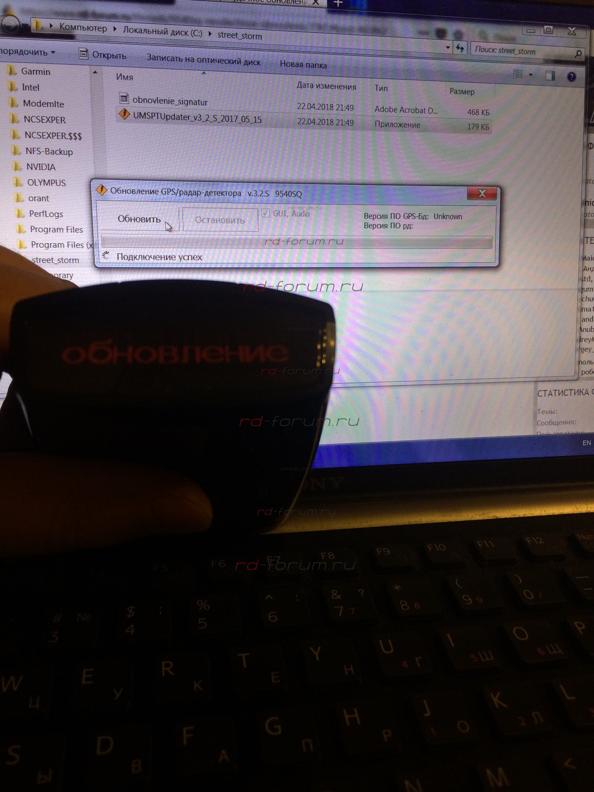 Пробовать ещё обновить.Скачал прогу с сайта , запустил подключил , замигал нажал обновить программа завершилась с ошибкой и прибор завис в режиме обновление
