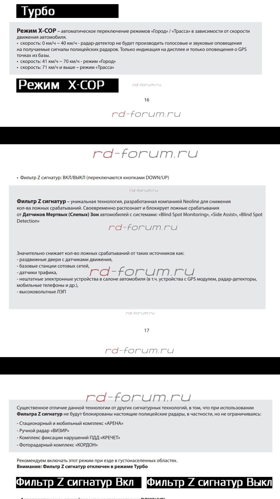 8. Режимы чувствительности (Город, Трасса, Турбо, Х-СОР) убраны из меню и меняются только кнопкой «MODE».