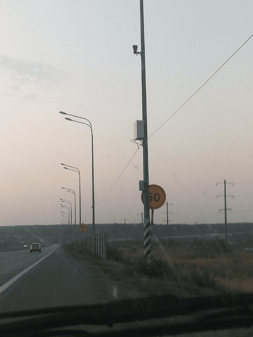 3. комплекс на столбе смотрит в сторону АЗС , фиксирует скорость и поворот на АЗС под сплошную линию разметки