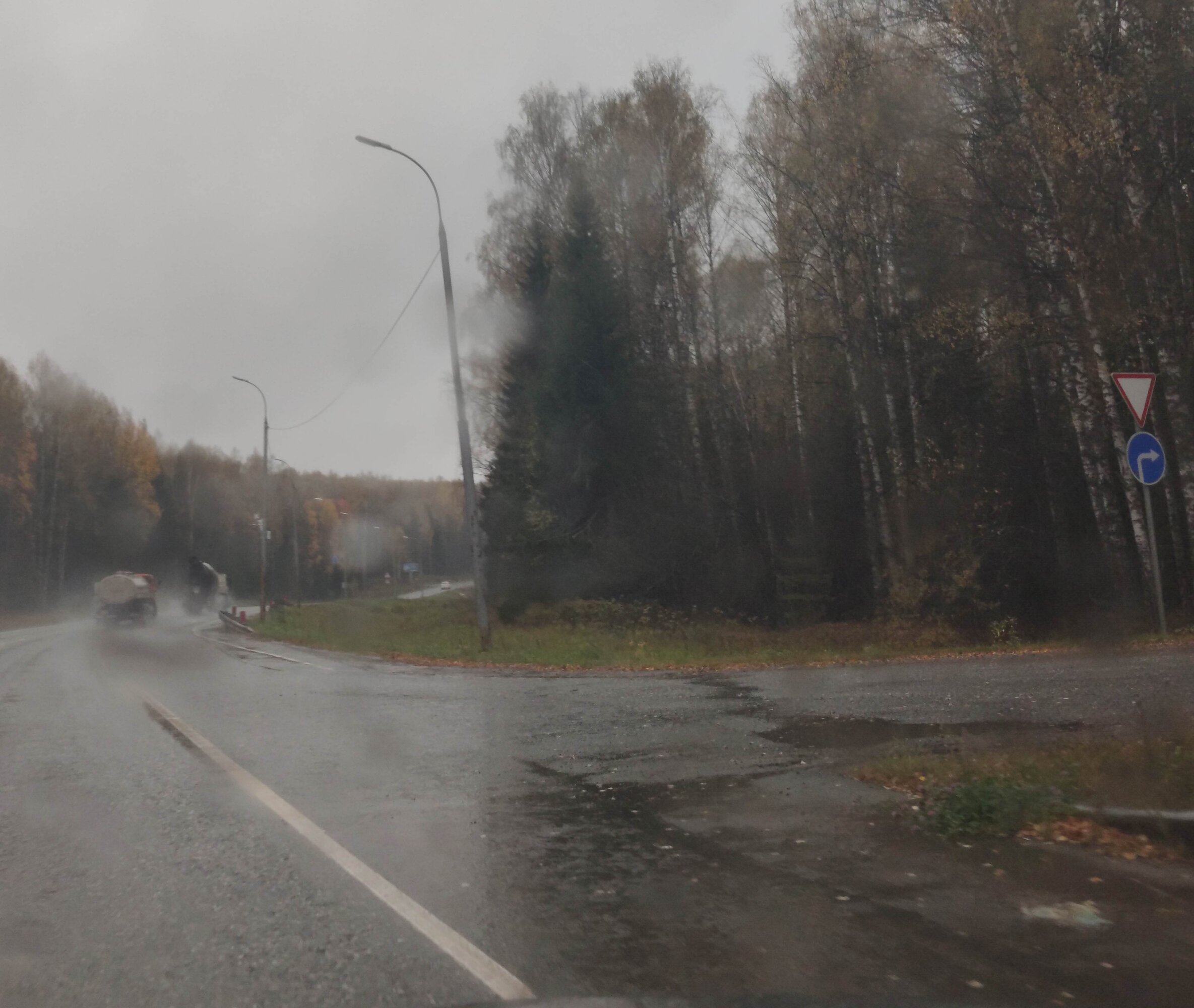 Трасса М-2, у остановки и поворота на Малахово